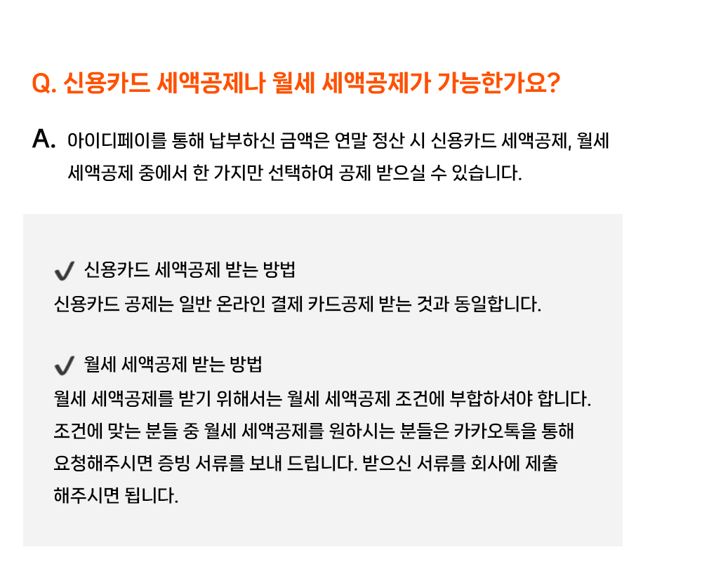 Q. 신용카드 세액공제나 월세 세액공제가 가능한가요?